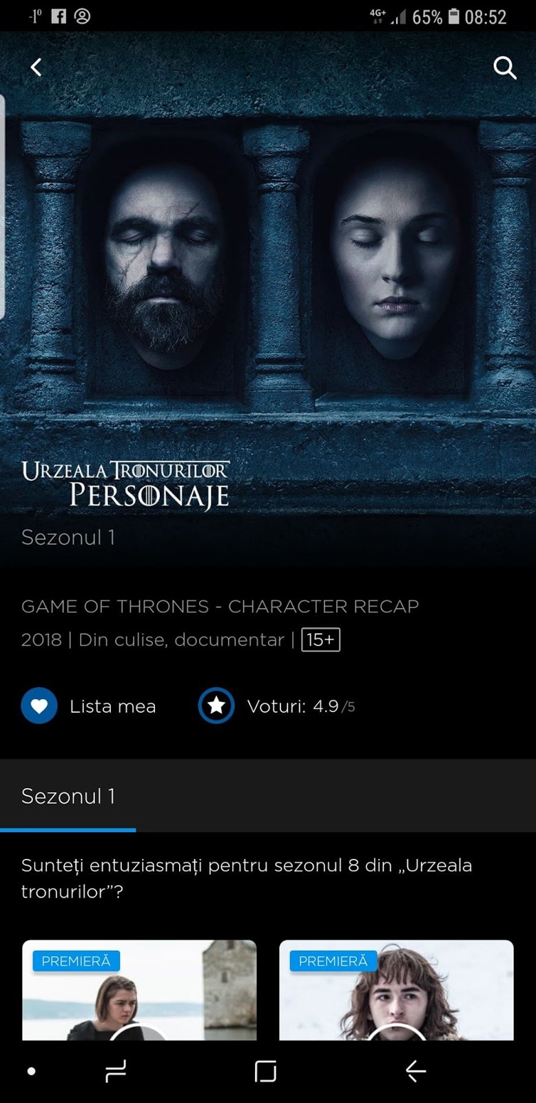 La capitolul filme si seriale, pentru fanele Game of Thrones -daca nu ati aflat inca despre cele 3 mini seriale cu Personaje, Case si Dezvaluiri-le gasiti pe NBO Go:
